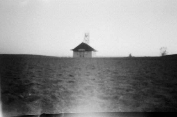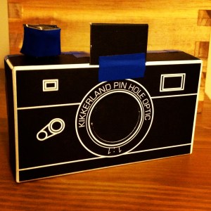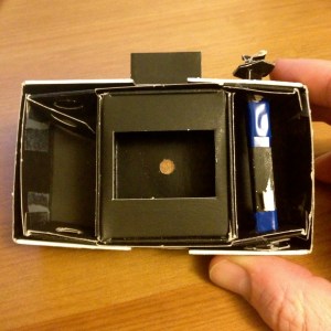 Nimbly constructed out of perforated heavy-stock paper, double-sided scotch tape and attractive royal-blue electrical tape–plus a single, millimetre-thick copper plate with the pinhole itself–this simple solargraphic device put the fun in fundamentalist obscura.